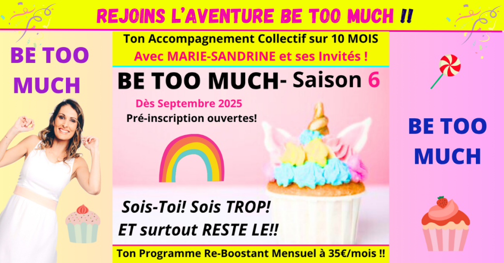 INSCRIPTION ouverte pour la Saison 6 de mon Accompagnement collectif mensuel et Aventure BE TOO MUCH!