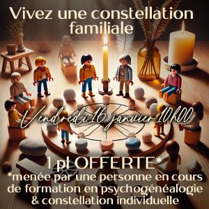 2026-01-16 10:00:002026-01-16 12:30:00Europe/Paris1 pl Constellation familiale individuelle vend 16 janvier 10hReservations on : https://www.billetweb.fr/1-pl-constellation-familiale-individuelle-vend-16-janvier-10h