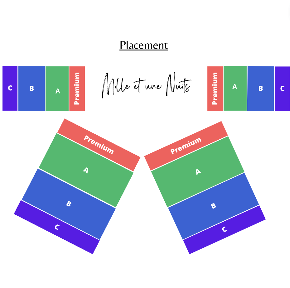 - Placement : Les places sont assignées par ordre d’arrivée, selon la catégorie réservée