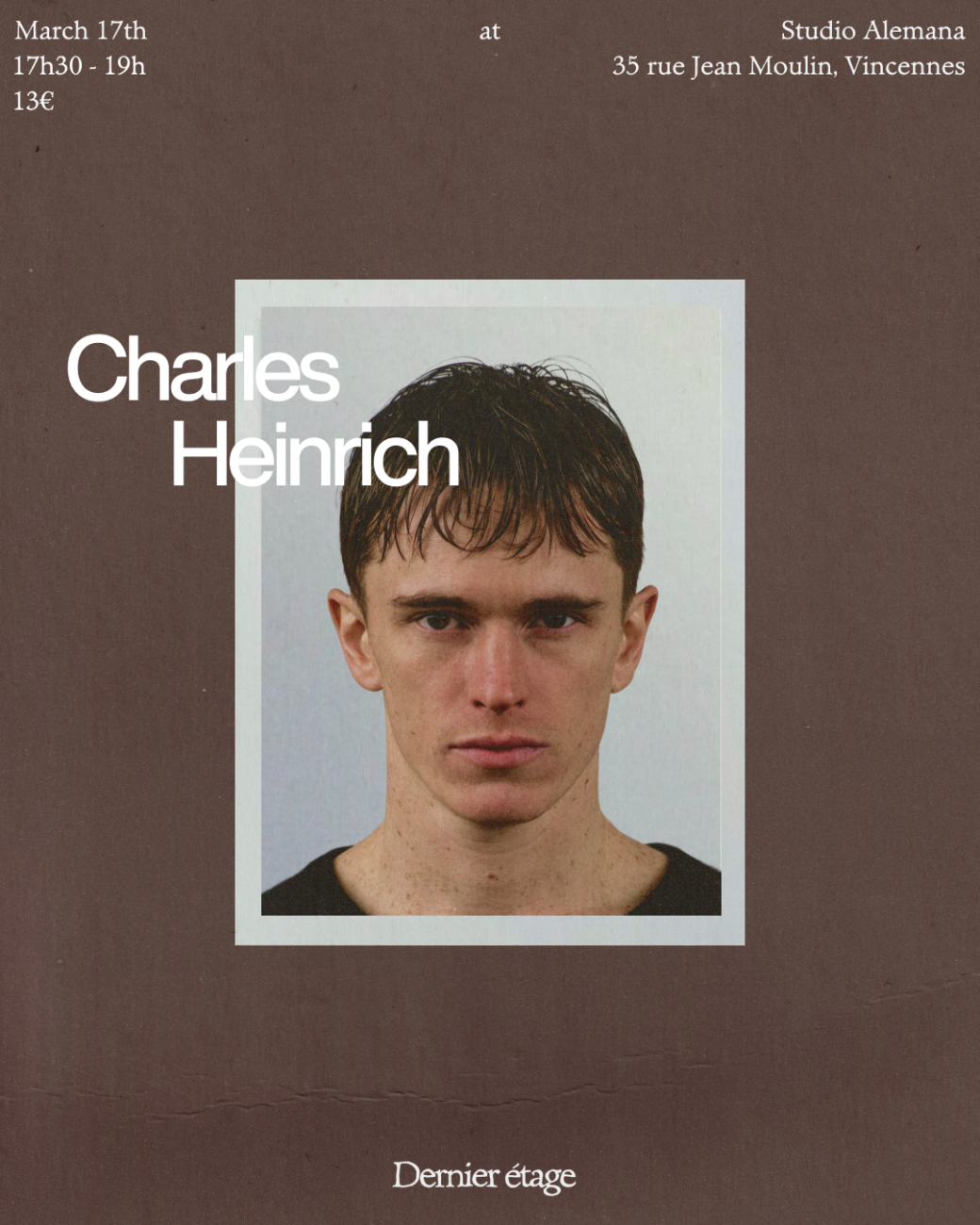 2026-03-17 17:30:002026-03-17 19:00:00Europe/Paris17/03/26 - by Dernier étage - Charles HeinrichReservations on : https://www.billetweb.fr/17-03-26-by-dernier-etage-charles-heinrich