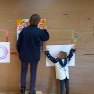 L'enfant et l'adulte ont chacun leur espace de création et partage la joie de partager ce moment ensemble sans jugement.