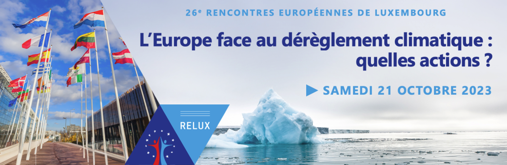 2023-10-21 09:30:00 2023-10-21 22:30:00 Europe/Brussels "L’Europe face au dérèglement climatique : quelles actions?" Reservations on : https://www.billetweb.fr/26emes-rencontres-europeennes-de-luxembourg -- ►  9h30 à 18h00 Colloque - entrée libre Athénée de Luxembourg, 24 blv. Pierre Dupong, L-1430 Luxembourg ►  13h00 Pause-déjeuner en présence de producteurs bio de la ferme Kass (Rollingen) et du domaine viticole Sunnen-Hoffmann (Remerschen) dont nous goûterons les produits. Athénée de Luxembourg Inscription à la pause-déjeuner requise avant le dimanche 15 octobre inclus ►  18h30 Cocktail pour les participants au colloque, offert par la Ville de Luxembourg Athénée de Luxembourg ►  20h30 Banquet avec le soutien du Gouvernement luxembourgeois Brasserie du Cercle, 2A rue des Capucins, L-1313 Luxembourg Inscription au banquet requise avant le dimanche 15 octobre inclus     Athénée de Luxembourg, 24 Boulevard Pierre Dupong, L-1430 Luxembourg Rencontres européennes de Luxembourg ASBL