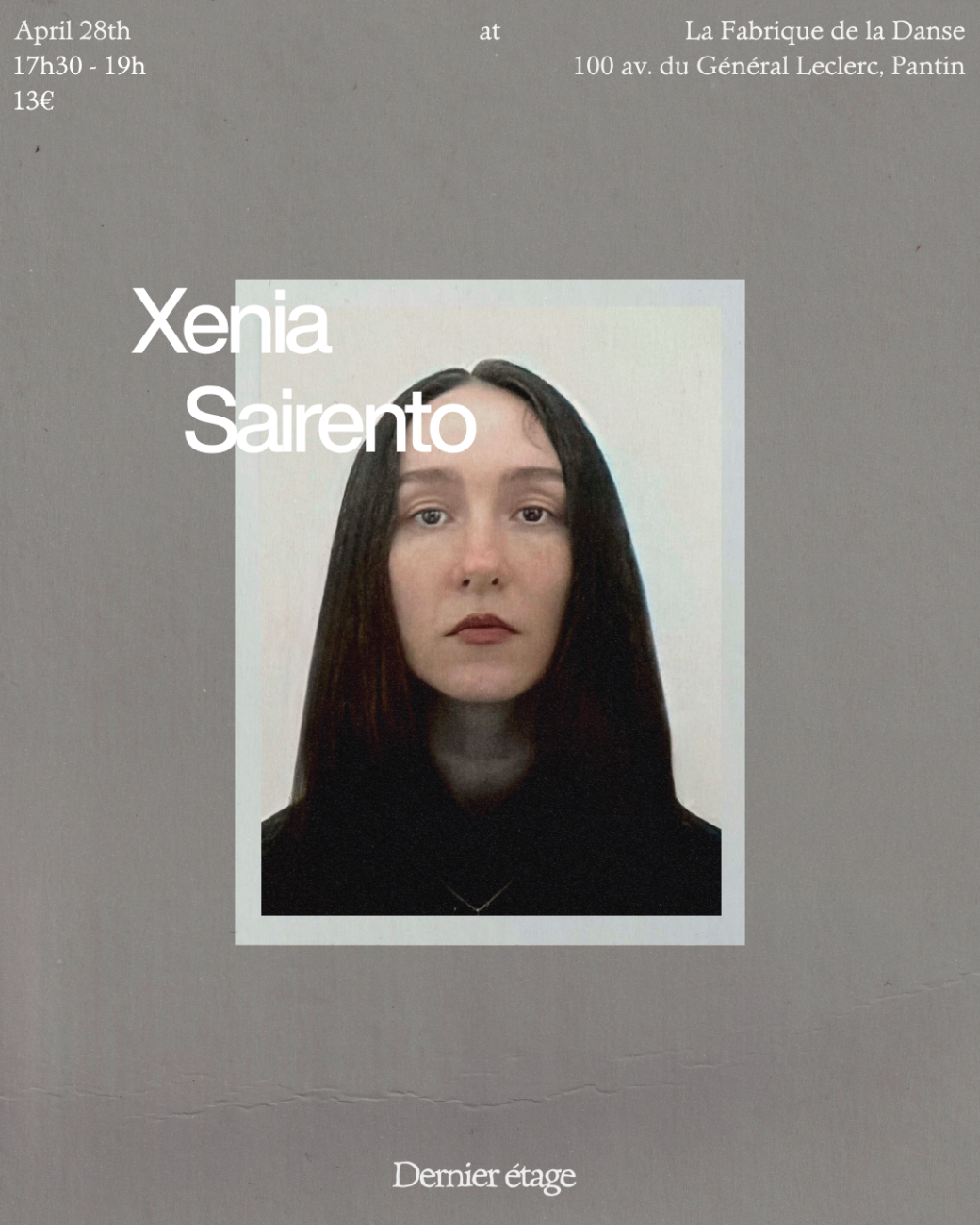 Issue d'une solide formation en danses urbaines (hip-hop, house) développée au fil des années, Xénia Sairento a ensuite élargi sa pratique à la danse contemporaine, au théâtre physique et à la recherche sur le mouvement.