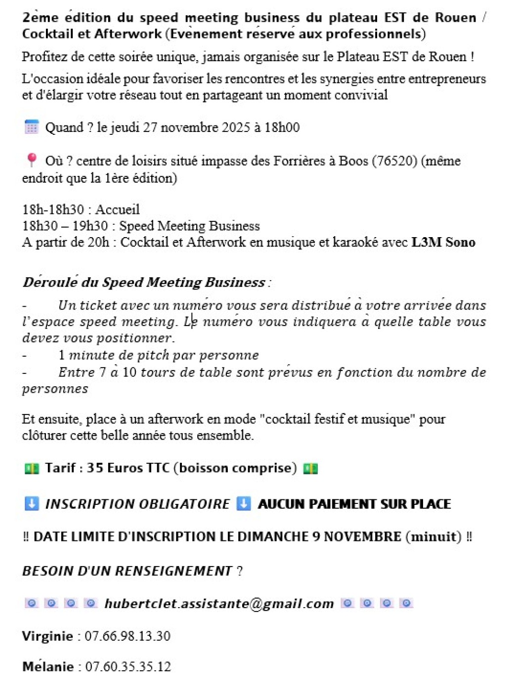 Reservations on : https://www.billetweb.fr/2eme-speed-meeting-business-et-afterwork --