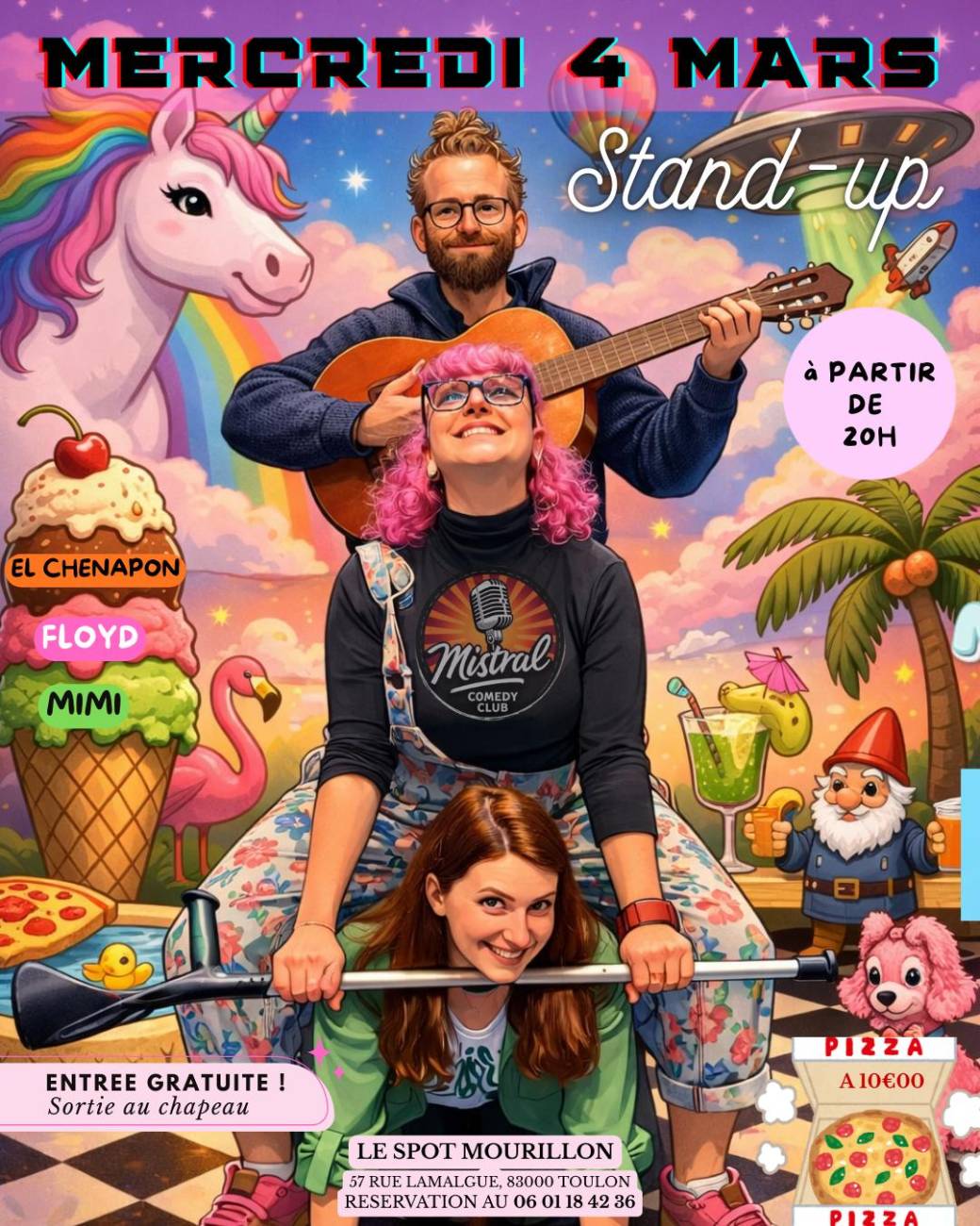 Entrée gratuite, sortie au chapeau et pizza à 10euro special stand up! Et ça se passe au bar Le Spot à Toulon !