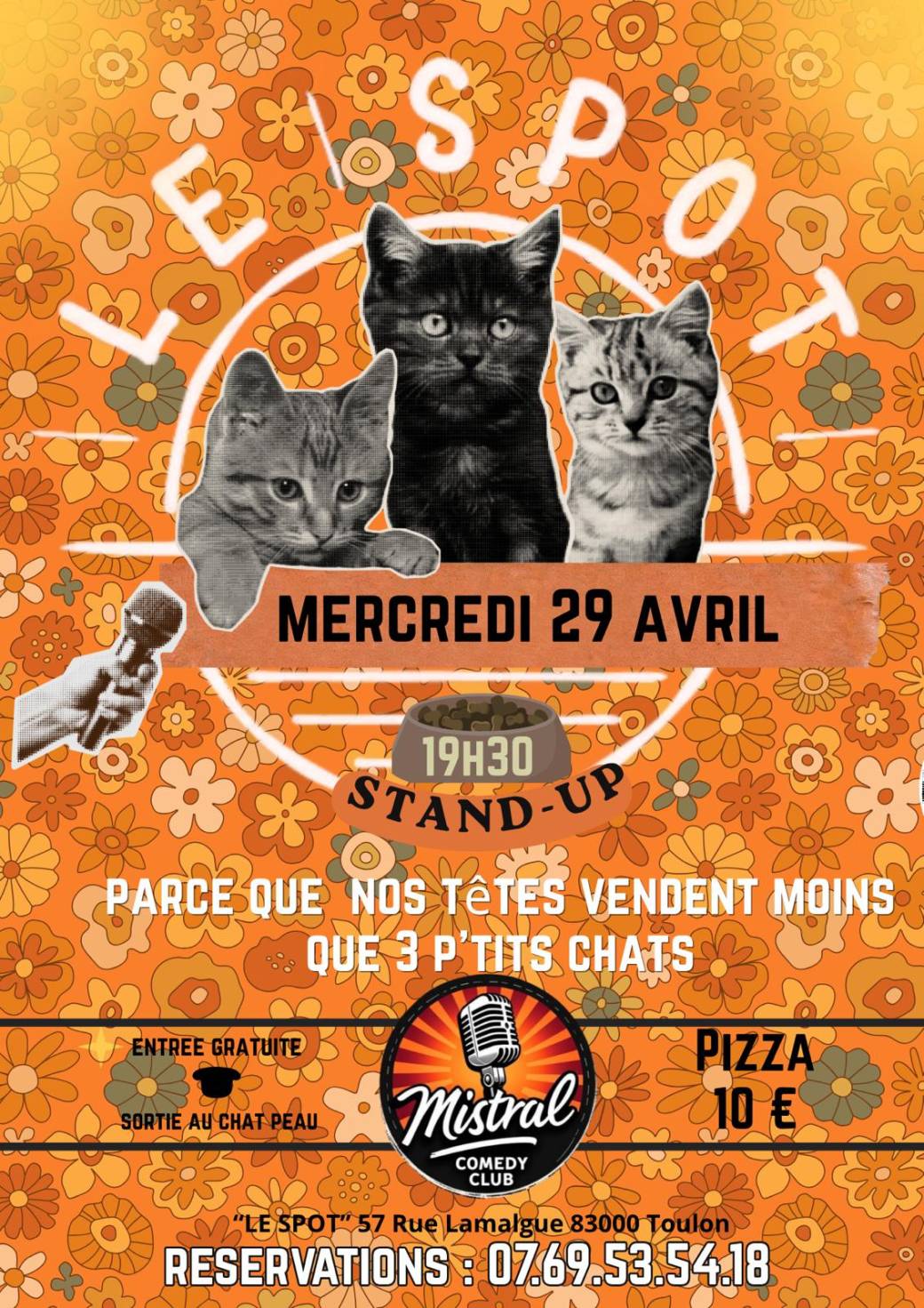 Entrée gratuite, sortie au chapeau et pizza à 10euro special stand up! Et ça se passe au bar Le Spot à Toulon !