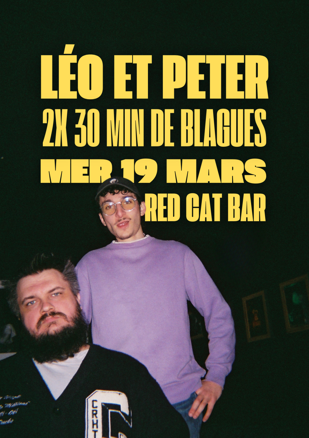 Retrouvez Léo et Peter au RedCat Bar pour 30mn de blagues chacun (autrement appelé "30/30", ce qui fait, selon nos calculs, 1h de blagues)