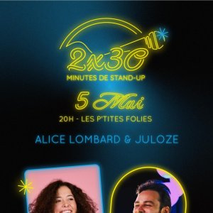 2023-05-05 20:00:00 2023-05-05 20:00:00 Europe/Paris 30 minutes chacun - Juloze & Alice Lombard Reservations on : https://www.billetweb.fr/30-minutes-chacun-juloze-alice-lombard -- Le Angers Comedy Club vous propose de voir nos jeunes angevins avec le vent en poupe sur 30 minutes de stand-up chacun ! Juloze, Alice Lombard pour votre plus grand plaisir !    Venez découvrir les humoristes du dimanche soir jouer sur 30 minutes dans l'optique de création de leur prochain spectacle.   Début du spectacle 20h  Les P'tites Folies, 24 Avenue Pasteur, Angers, France Les Folies Angevines