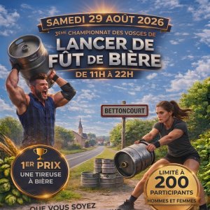 Reservations on : https://www.billetweb.fr/3eme-championnat-des-vosges-de-lancer-de-fut-de-biere --