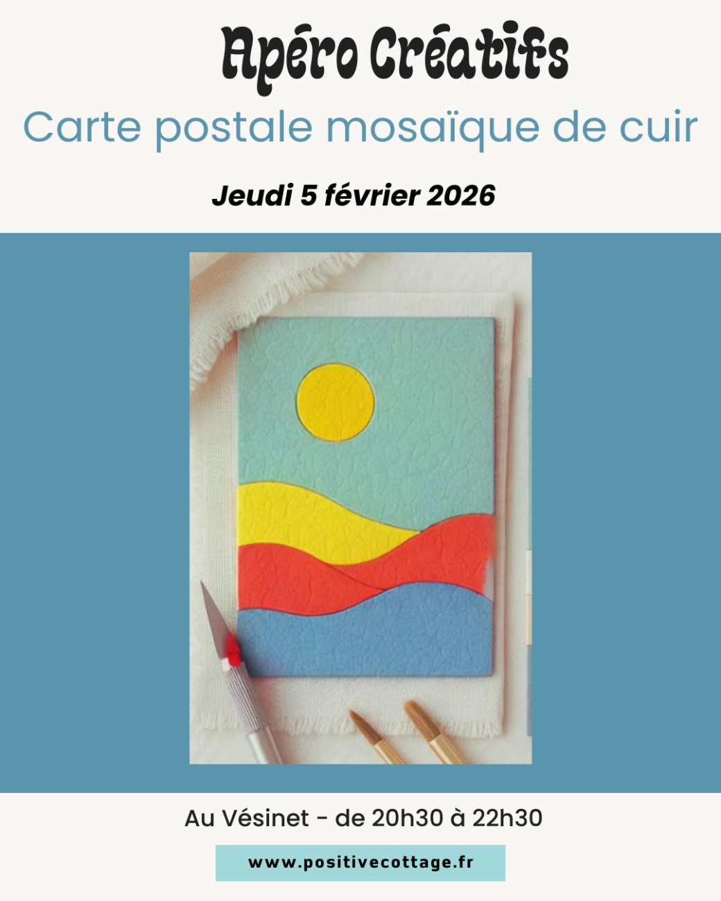 2026-02-05 20:30:002026-02-05 22:30:00Europe/Paris5/02/26 - carte postale mosaïque de cuirReservations on : https://www.billetweb.fr/5-02-26-carte-postale-mosaique-de-cuir