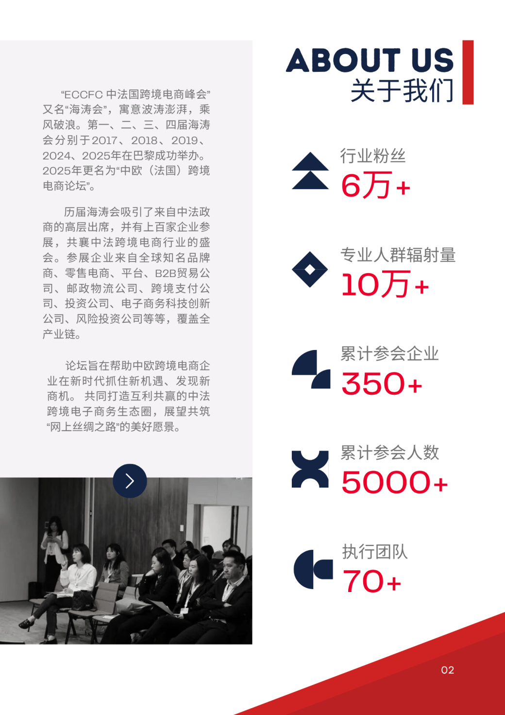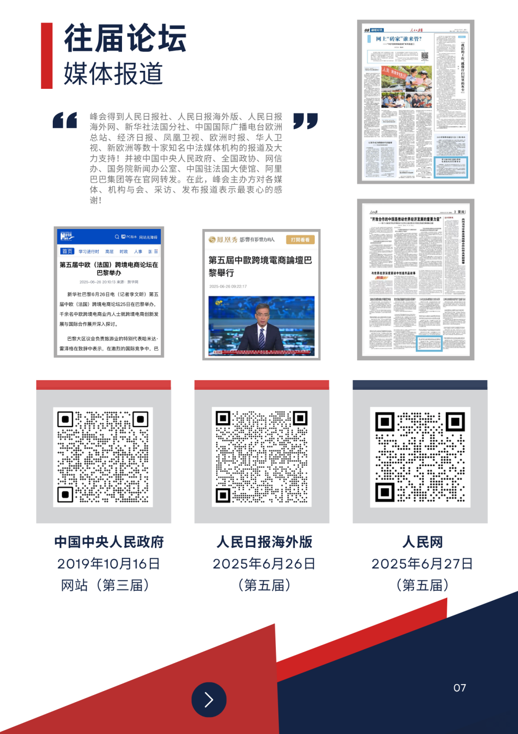"L'ECCFC Forum E-commerce Cross-border Franco-Chinois", également connu sous le nom de "Forum Haitao", symbolise les vagues déferlantes, naviguant avec le vent et bravant les vagues. Les première, deuxième et troisième édition du Forum Haitao ont été organisées, respectivement, avec succès à Paris en 2017, 2018 , 2019, 2024 et 2025 .