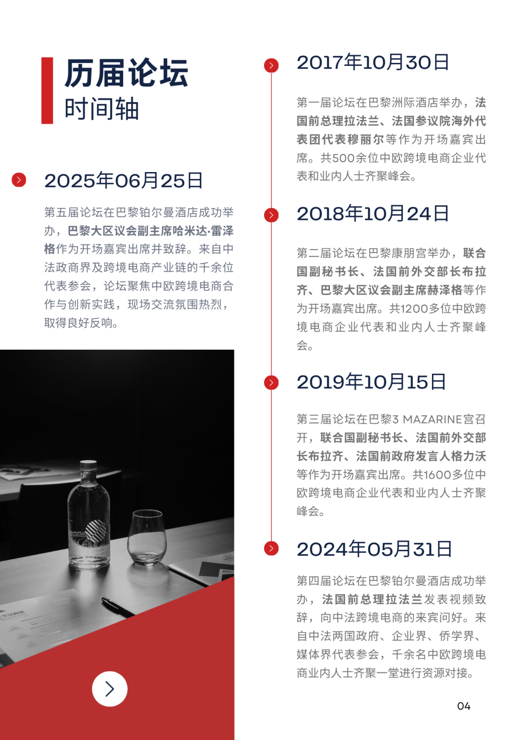 Les éditions précédentes du Forum Haitao ont attiré la participation de dirigeants du secteur politique et commercial sino-français, avec la présence de plusieurs centaines d'entreprises exposantes, contribuant ainsi à faire de cet événement une grande célébration de l'industrie du E-commerce Cross-border Franco-Chinois. Les entreprises exposantes provenaient de marques mondiales renommées, de détaillants en ligne, de plateformes, de sociétés de commerce B2B, de sociétés de logistique postale, de sociétés de paiement transfrontalier, de sociétés d'investissement, d'entreprises technologiques innovantes en commerce électronique, de sociétés à capital-risque, etc., couvrant l'ensemble de la chaîne de l'industrie.