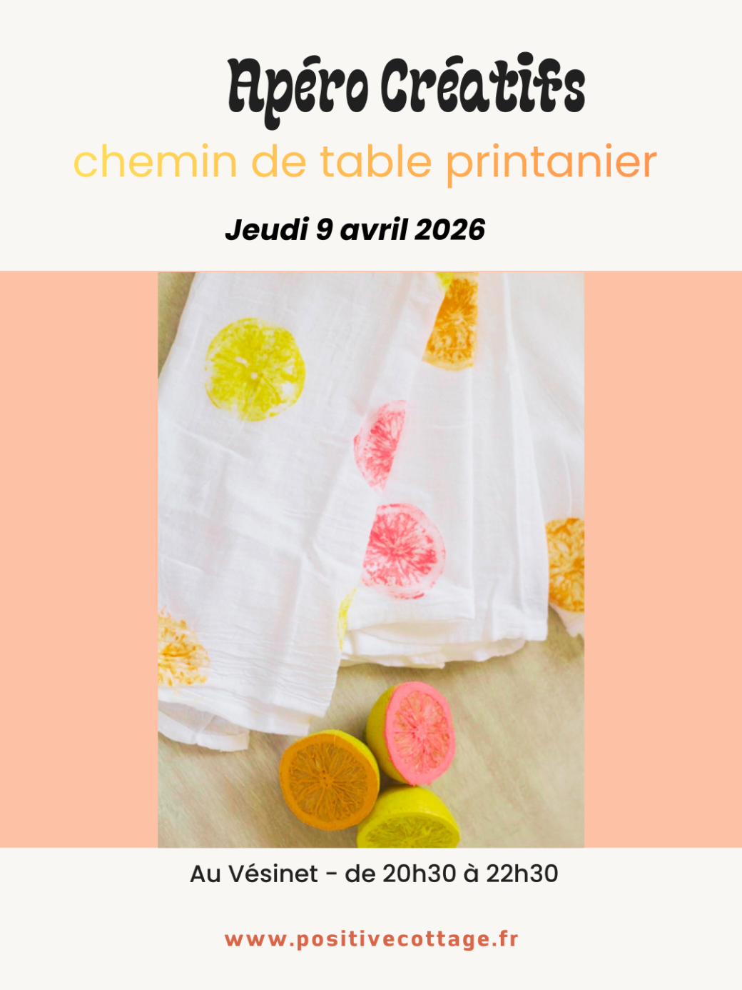 Sublimez vos repas avec un joli chemin de table fait maison. Je vous propose d'expérimenter l'impression au tampon mais avec des fruits et légumes !! Vous choisirez vos moitiés et couleurs pour une réalisation personnelle.