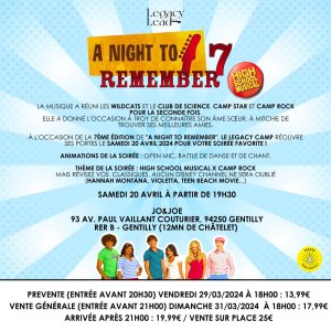 Durant la soirée, plusieurs animations vous seront proposées : Open Mic comme à Camp Rock, Battle de danse comme à Camp Star, Karaoké pour rencontrer votre Troy ou votre Gabriella...