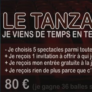 2026-02-12 04:41:002027-02-12 00:00:00Europe/BrusselsABONNEMENT TANZANTANReservations on : https://www.billetweb.fr/abonnement-tanzantan