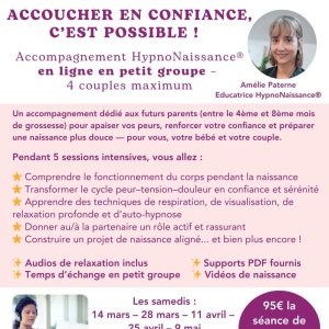 Reservations on : https://www.billetweb.fr/accompagnement-hypnonaissance-en-ligne --
