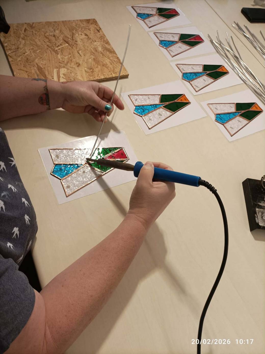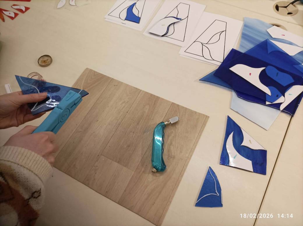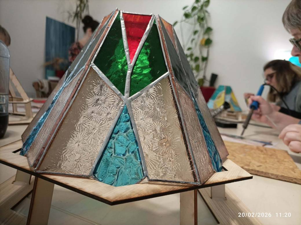 Durant ce stage, vous apprendrez toutes les étapes de la technique Tiffany (choix du modèle, choix des verres de couleurs, coupe, meulage, ruban de cuivre, soudure, …) et vous repartirez avec un magnifique abat-jour réalisé de vos propres mains, prêt à être installé sur le pied de lampe de votre choix.