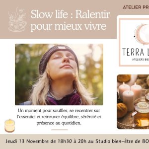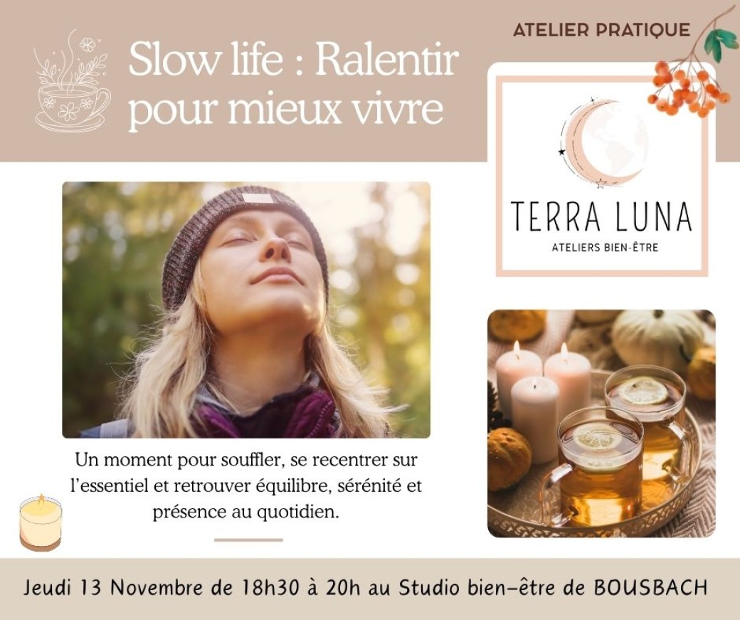 Atelier Slow Life – Ralentir pour mieux vivre : offrez-vous une parenthèse pour ralentir le rythme, apaiser le mental et vous reconnecter à l’essentiel !