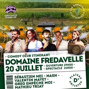 Très heureux de vous accueillir au Domaine Fredavelle, pour vivre une expérience complète avec au menu du rire (of course) et des bonnes choses à manger et à boire (Vins, bières et apéro).
