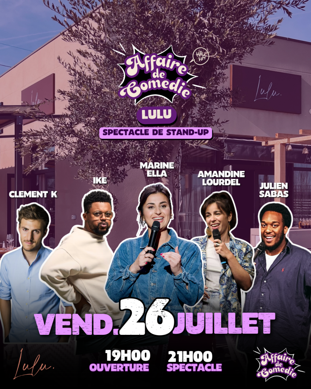 Rejoignez-nous pour une soirée de rires et de divertissement au restaurant Lulu à la Duranne, le vendredi 26 juillet.