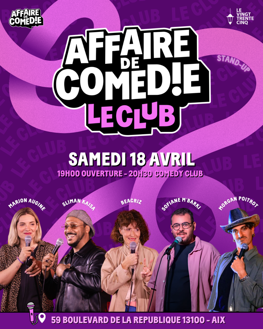 Le Club débarque à Aix ! Chaque samedi, Affaire de Comédie vous propose un comedy club avec les meilleurs artistes de la région pour plus d'une heure de blagues.