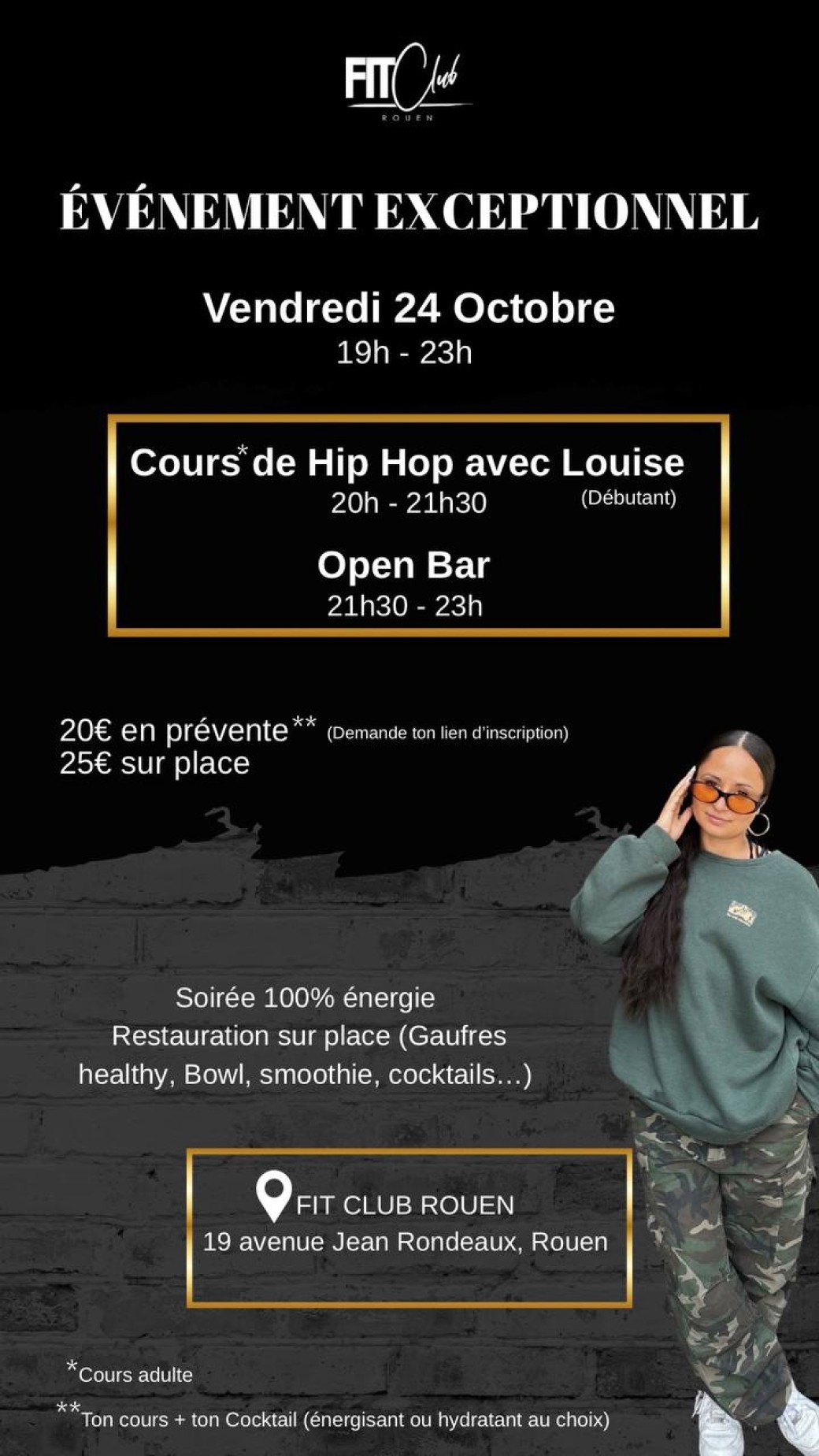 ❤️ 20h - 21h30 – Cours de danse Hip Hop Adulte débutant avec Louise, danseuse rouennaise ayant notament enflammé la scène tout l'été au coté du chanteur, Rilès;