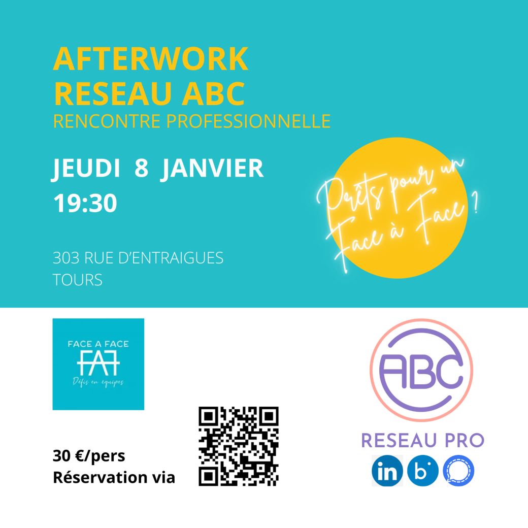 2026-01-08 19:30:002026-01-08 22:30:00Europe/ParisAfterwork ABCReservations on : https://www.billetweb.fr/afterwork-abc2