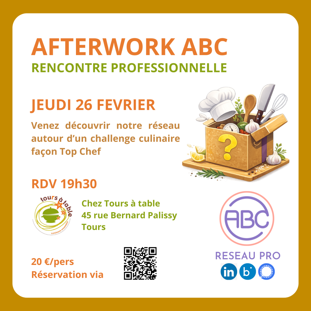 Le Réseau ABC vous invite à rencontrer ses membres autour d'un challenge culinaire ludique et collaboratif. Au programme : des échanges, un moment convivial entre pro suivi d'un repas dégustation. Une belle opportunité de découvrir notre réseau.