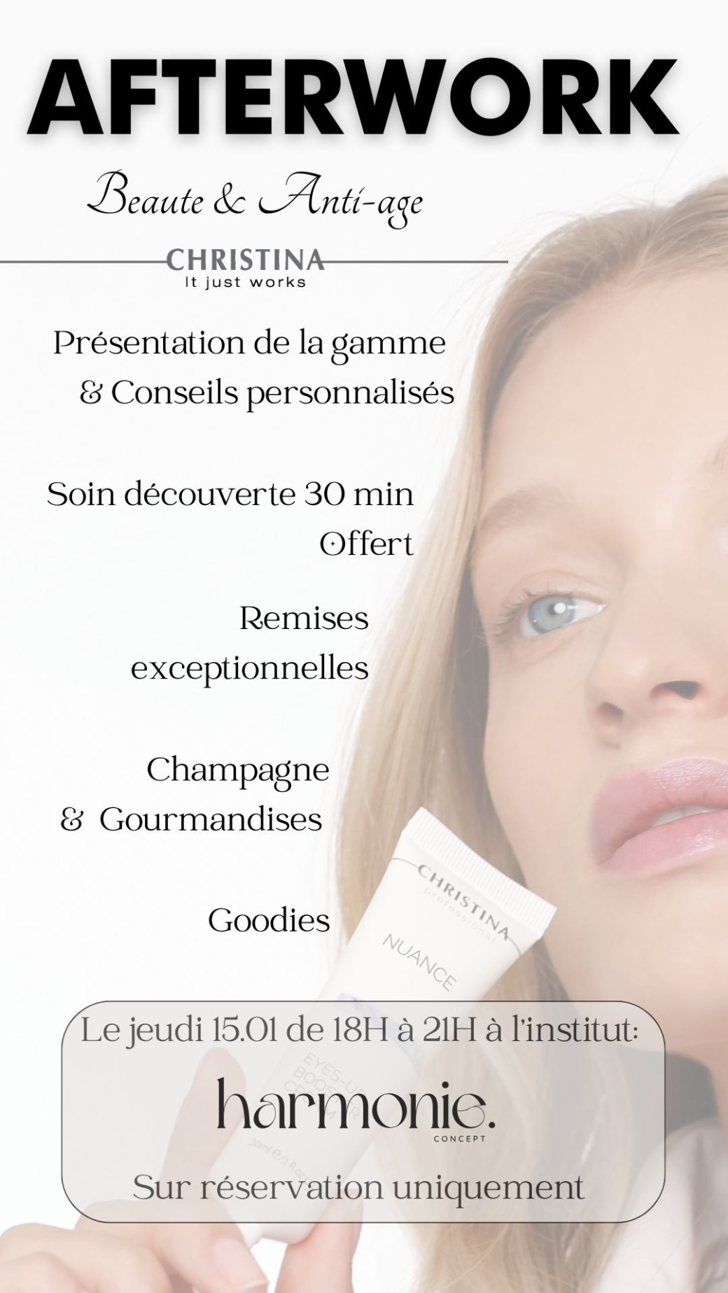 L’institut Harmonie Concept vous invite à un afterwork exclusif dédié à la beauté et à l’anti-âge, en collaboration avec la marque Christina.