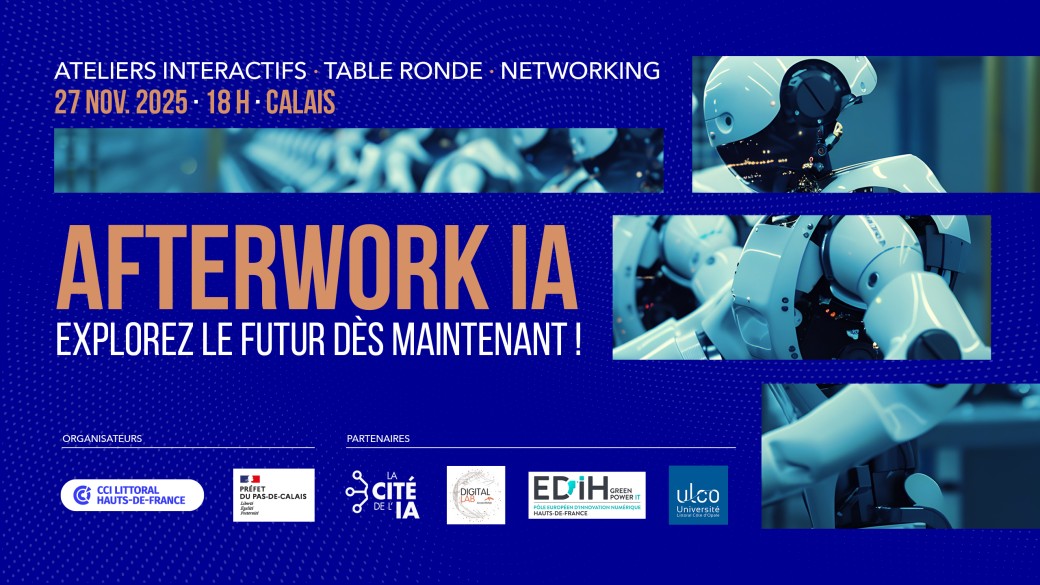 Pour explorer concrètement le potentiel de l’IA, la CCI Littoral Hauts-de-France et la Sous-Préfecture de Calais, en partenariat avec la Cité de l’IA, le Digital Lab ArcelorMittal, l'EDIH Hauts-de-France et l'Université Littoral Côte d'Opale, vous proposent une soirée inédite, pensée pour explorer, expérimenter et s’inspirer.