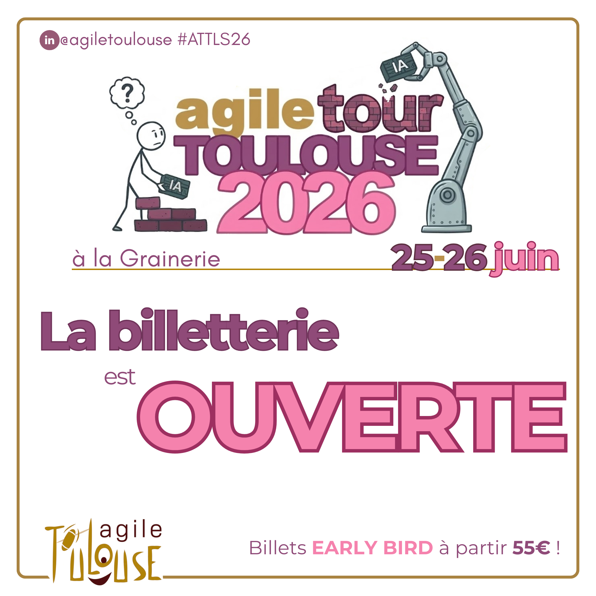 2026-06-25 08:30:00 2026-06-26 18:30:00 Europe/Paris Agile Tour Toulouse 2026 Reservations on : https://www.billetweb.fr/agile-tour-toulouse-2026 -- La Grainerie, Rue Saint-Jean, Balma, France Agile Toulouse
