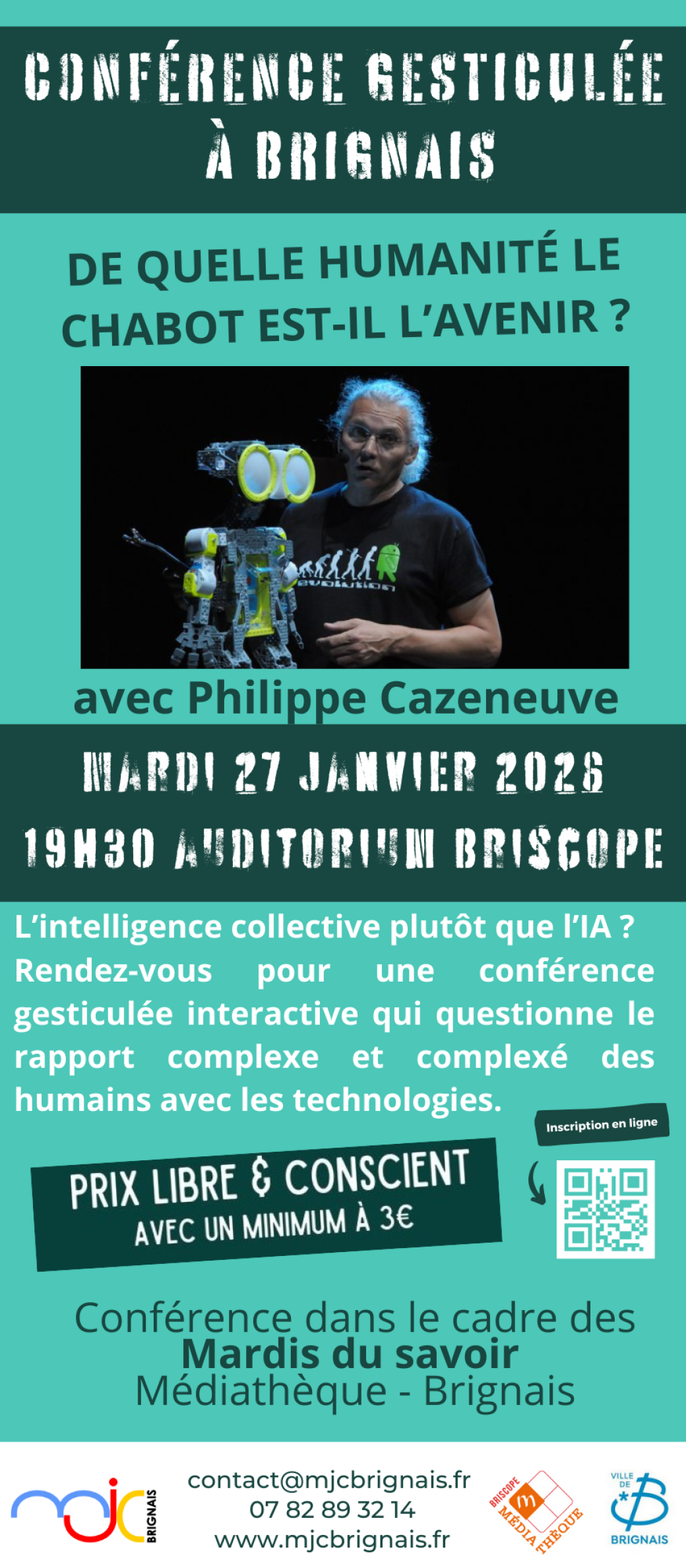 2026-01-27 19:30:002026-01-27 22:00:00Europe/ParisAgitons nos idées : De quelle humanité le chabot est-il l’avenir ?Reservations on : https://www.billetweb.fr/agitons-nos-idees-de-quelle-humanite-le-chabot-est-il-l-avenir