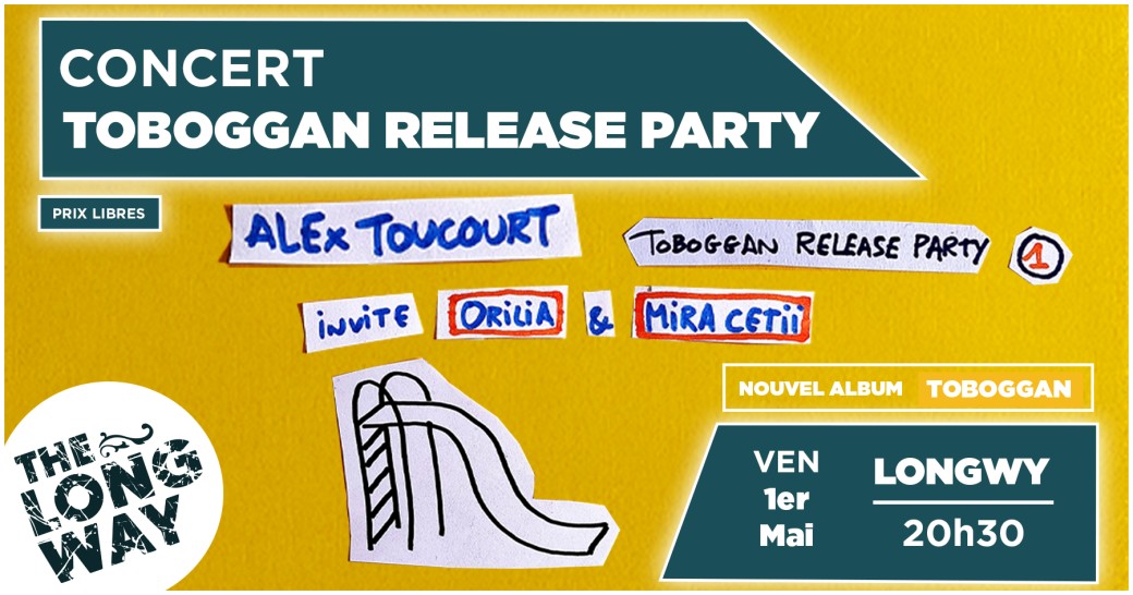 Alex Toucourt, musicien lorrain talentueux et habitué de la scène du The Long Way, choisit naturellement Longwy pour la première release party de son nouvel album Toboggan. Accompagné d'Orilia et Mira Cetii, il présentera ses nouveaux titres le vendredi 1er mai à 20h30.