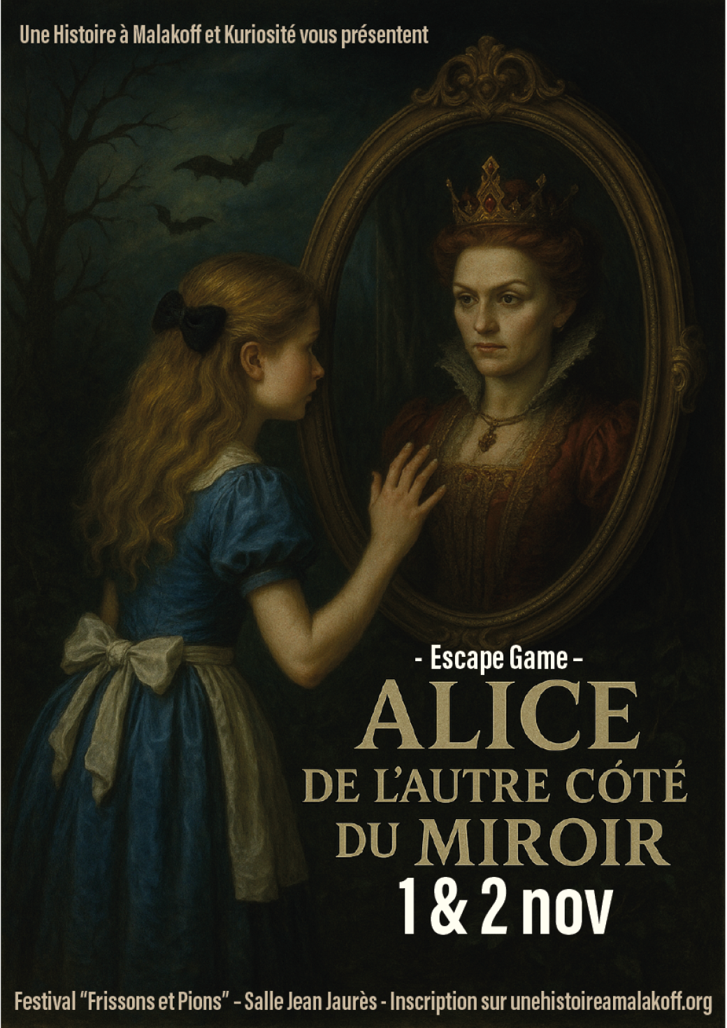 Une Histoire à Malakoff et Kuriosité vous présentent l’escape game Alice de l’autre côté du miroir, dans le cadre du festival Frissons et pions organisé par Malajeux.