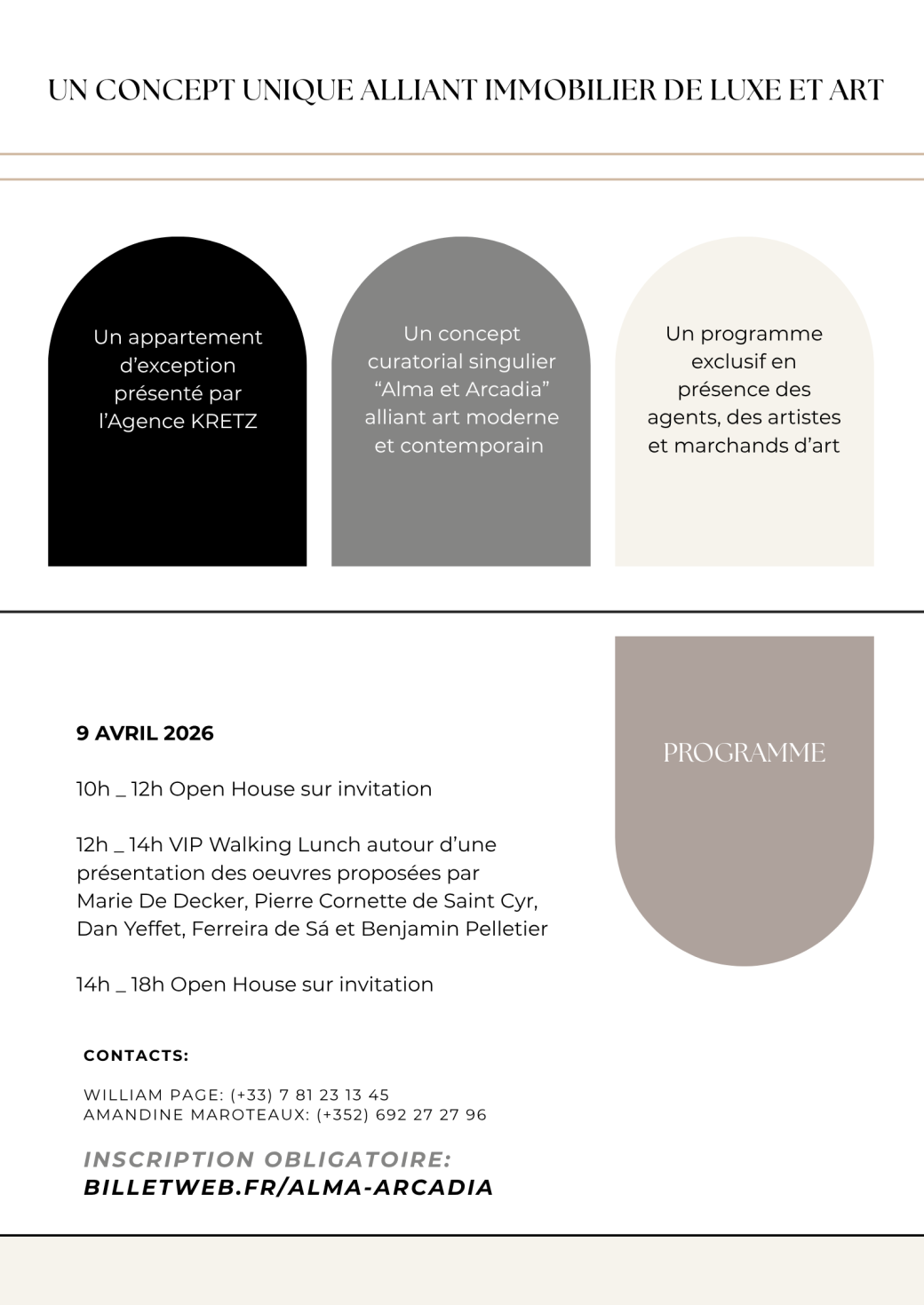 Le 9 avril 2026, un appartement d’exception situé face au Louvre accueille une expérience immersive au croisement de l’art et de l’immobilier de luxe, présenté par William Page & Lucie Coquereau de l'agence Kretz Family Real Estate.
