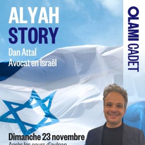 2025-11-23 21:00:00 2025-11-23 22:00:00 Europe/Paris Alyah Story - Dan Attal avocat en Israel Reservations on : https://www.billetweb.fr/alyah-story-dan-attal-avocat-en-israel -- Conférence exceptionnelle avec Dan Attal, avocat en Israël. Il viendra raconter son parcours : ancien avocat en France, il a fait son alyah, passé l’équivalence, et exerce aujourd’hui en Israël. Il partagera ses conseils, son expérience et son histoire. Ce dimanche 23 novembre après les cours d'Oulpan pour les 23-30 ans.  Inscription obligatoire : olami-cadet-nation.fr    - Olami Cadet