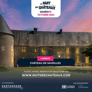 Le château de Saveilles ouvre ses portes à la tombée de la nuit pour vous faire découvrir ce monument emblématique du pays du Ruffécois (nord-Charente) et vous présenter sept siècles d'histoire et d'architecture, ses heures de gloire et ses périodes de vicissitudes, son abandon et sa renaissance, en lien avec des personnages connus de l'Histoire de France : à vivre hors du temps, dans une ambiance nocturne.