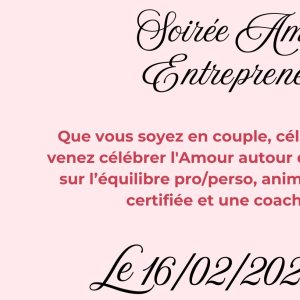 2026-02-16 18:45:002026-02-17 00:30:00Europe/ParisAmour & Entrepreneuriat : comment trouver l'équilibre entre vie pro/perso. Reservations on : https://www.billetweb.fr/amour-entrepreneuriat-comment-trouver-lequilibre-entre-vie-pro-perso