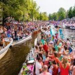 Assistez à l'Amsterdam Canal Parade (une procession de bateaux décorés défilant dans une ambiance carnavalesque et survoltée le long des canaux)! Ambiance festive garantie ♫ ♪ ♫