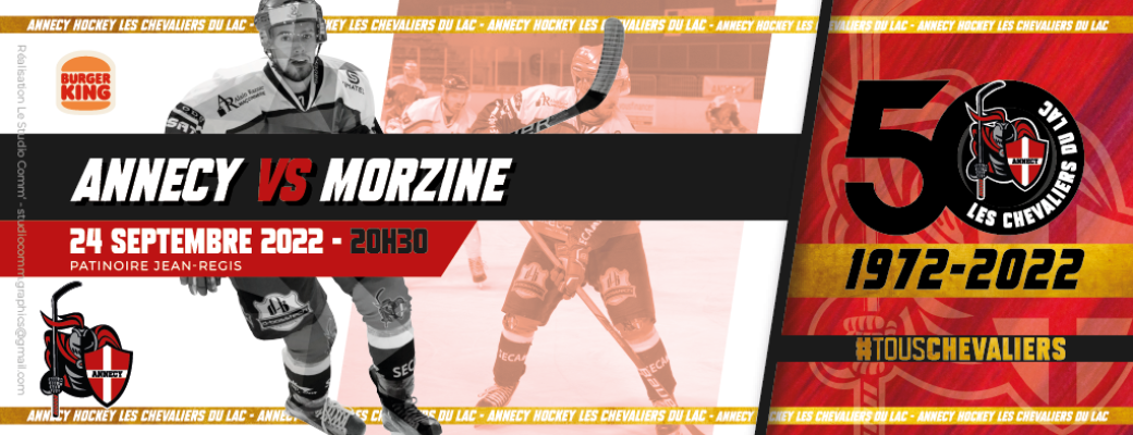 2022-09-24 20:30:00 2022-09-24 23:00:00 Europe/Paris Annecy - Morzine Reservations on : https://www.billetweb.fr/annecy-morzine6 -- Match de préparation D2.   Assistez aux 50 ans du club à l'occasion de cette rencontre face à Morzine-Avoriaz. Nombreuses animations prévues.   Troisième match de préparation :      Coup d'envoi à partir de 20h30 Patinoire Jean Régis, Chemin des Fins Nord, Annecy, France Annecy Hockey
