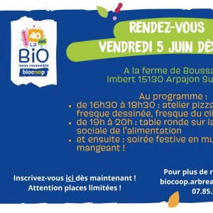 Reservations on : https://www.billetweb.fr/anniversaire-biocoop-larbre-a-pain --
