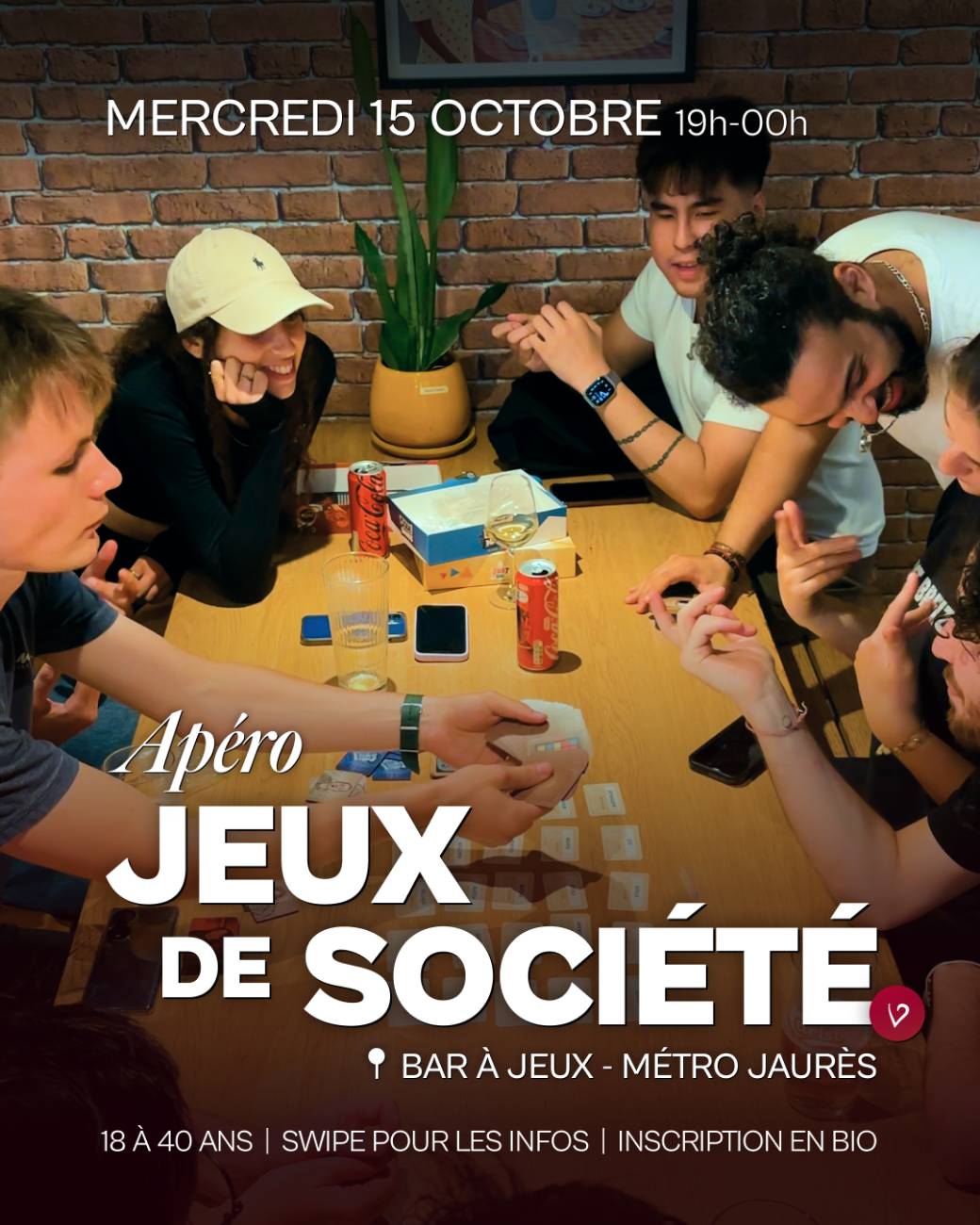 2025-10-15 19:00:002025-10-15 23:55:00Europe/ParisAPÉRO JEUX DE SOCIÉTÉReservations on : https://www.billetweb.fr/ap-ro-jeux-de-soci-t4
