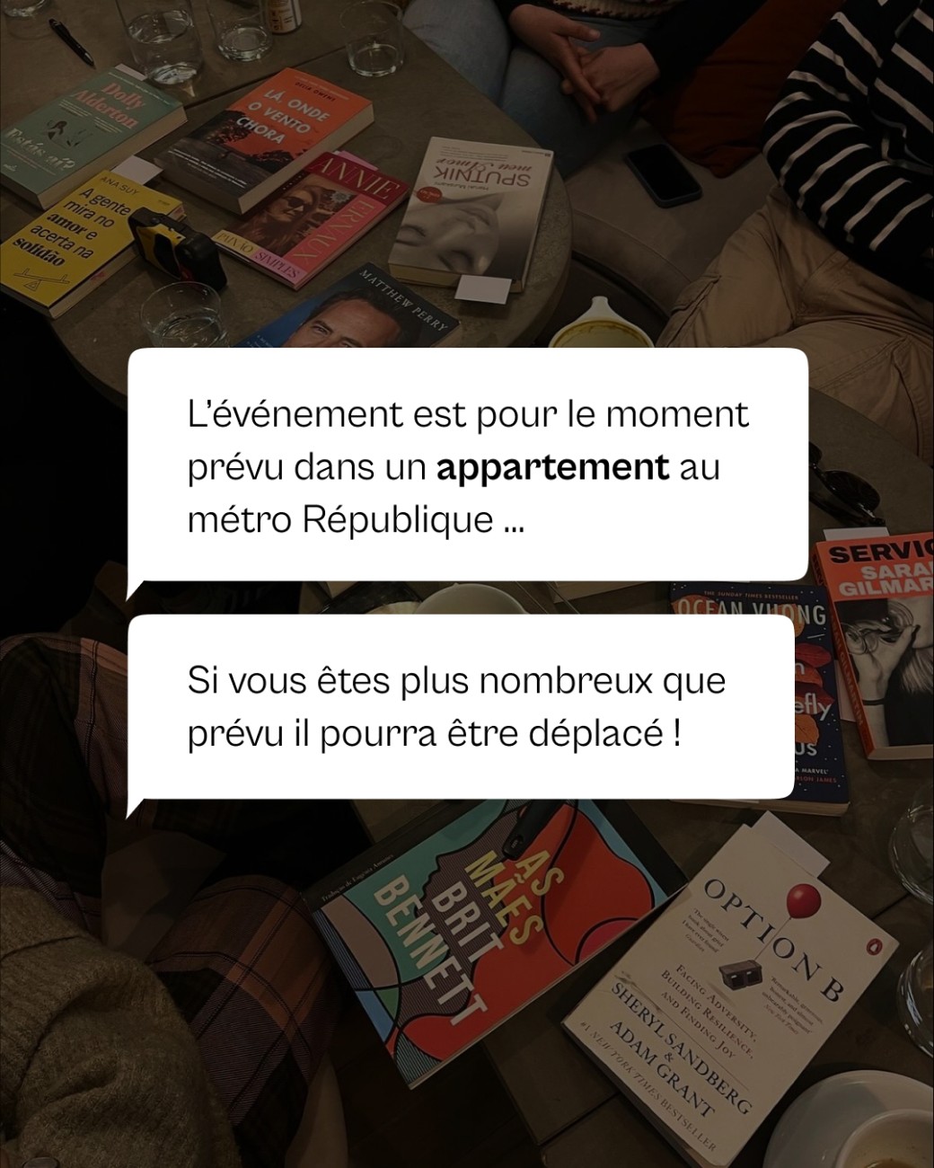 L'événement est prévu dans un appartement au métro République, mais pourra être déplacé dans un bar s'il y a plus de monde que prévu.