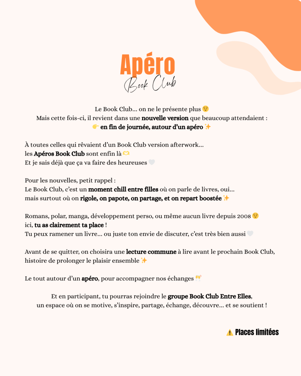 2026-02-27 19:00:00 2026-02-27 22:00:00 Europe/Paris Apéro Book Club Reservations on : https://www.billetweb.fr/apero-book-club --                                        ------------------------------   ⚠️ ATTENTION :   En cas d’annulation, le billet ne pourra être remboursé. Cependant, si tu souhaites l'offrir ou le revendre à une copine / sœur / collègue, ceci est possible. Quoi que tu décides, pense à me tenir informé de ta décision. Merci pour ta compréhension & hâte de te retrouver ! ✨ 7VB Café Mulhouse, Place de la République, Mulhouse, France Entre Elles