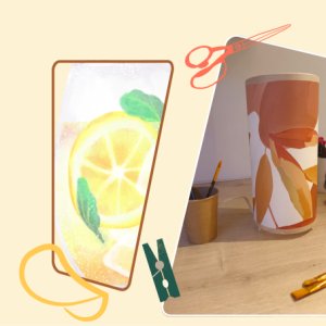– Conception d’une lampe de 25 cm de haut, personnalisée en papier ou tissu haut de gamme (fourni)