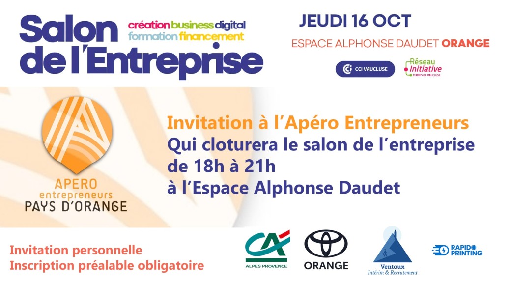 2025-10-16 18:00:002025-10-16 21:00:00Europe/ParisApéro Entrepreneurs Pays d'Orange Octobre 2025Reservations on : https://www.billetweb.fr/apero-entrepreneurs-pays-dorange-octobre-2025