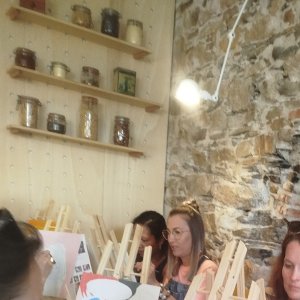 Un lieu convivial + une toile à peindre avec un dessin simplifié et déjà préparé = Un agréable moment de lâcher-prise et de bonne humeur. Aucune pression du résultat ! Juste du fun. Tarif= 21€ tout le matériel est fourni (hors consommations au bar) Et bien sûr, vous repartez avec votre œuvre !