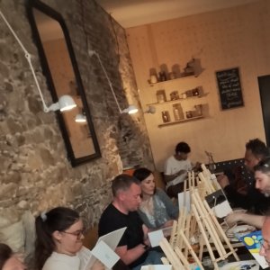 Un lieu convivial + une toile à peindre avec un dessin simplifié et déjà préparé = Un agréable moment de lâcher-prise et de bonne humeur. Aucune pression du résultat ! Juste du fun. Tarif= 22€ tout le matériel est fourni (hors consommations au bar) Et bien sûr, vous repartez avec votre œuvre !