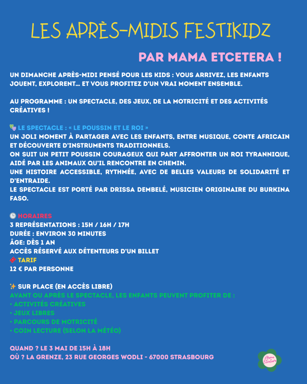 Reservations on : https://www.billetweb.fr/apres-midi-festikidz --