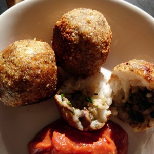 Au menu notamment des arancini à la scarmoza : une base de risotto, un morceau de scarmorza, une jolie panure et le tour est joué.